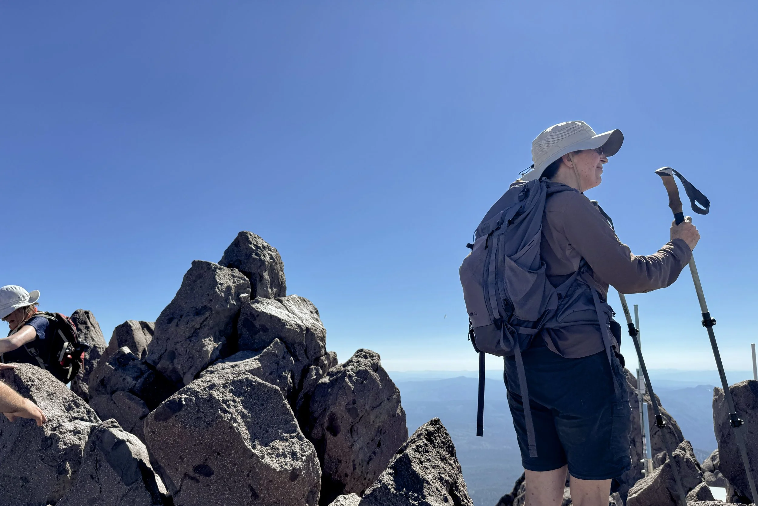 The second long vacation was a road trip. The first half was with our hiking group, driving down the Oregon coast, then going to Redwood and then Lassen Volcanic National Parks. We then continued south to see some of Frank’s friends in the Bay Area, fitting day trips to San Francisco and Half Moon Bay into the stay. We then hiked around Mt. Shasta, saw a play in Ashford, friends in Medford, then hiked the Ten Falls Trail near Salem.