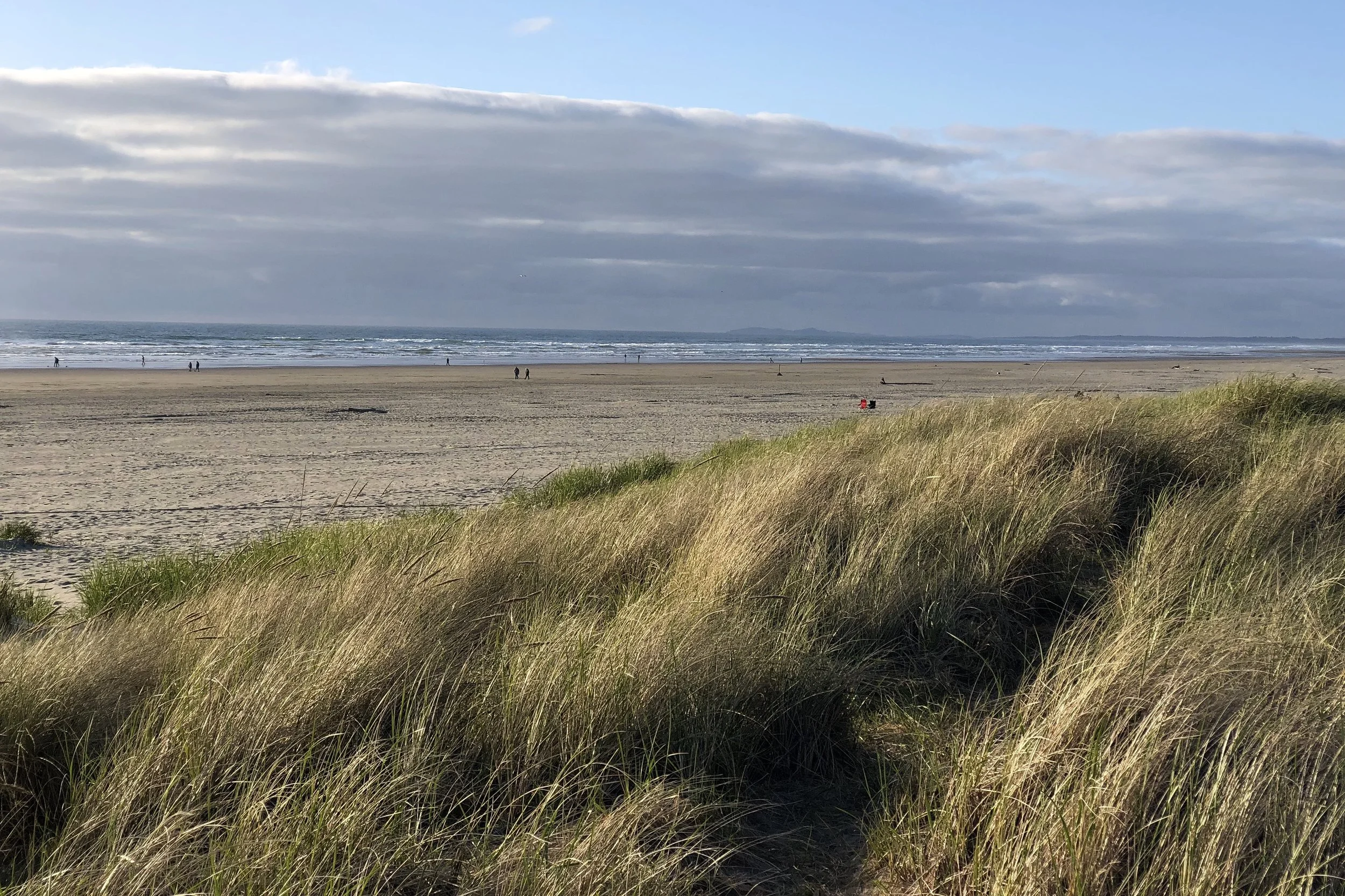 Turning around, we walked down south for a way, then headed out towards the water. South of Broadway, there's a bunch of low, grassy dunes before you get to the actual beach, and both Melody and I were reminded of Long Beach, WA, which is similar.