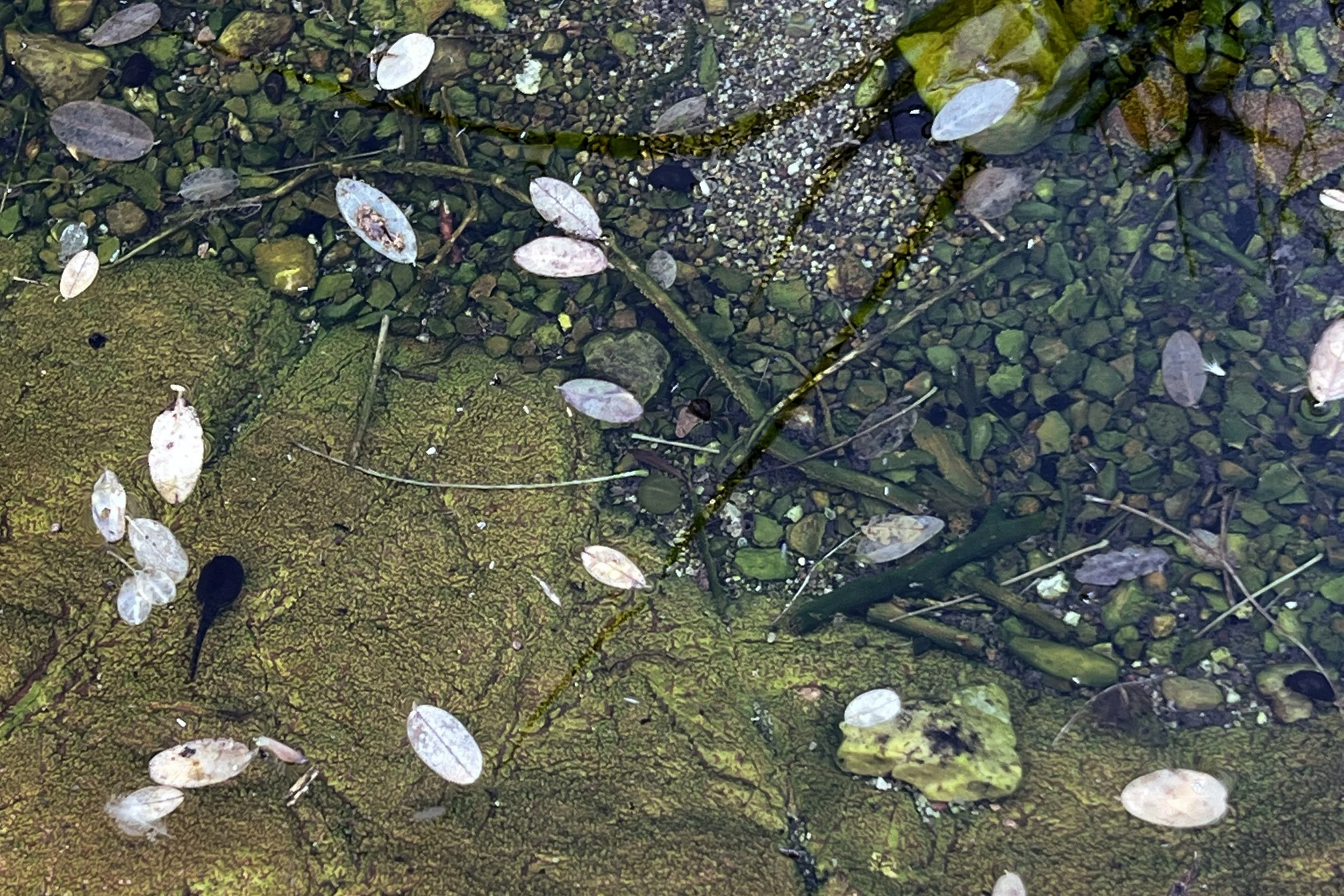 As we descended into the wash, it was easy to see just how much water could be going through in the rainy season. As with the river beds we saw in the eastern part of the park, the wash was dry. After we had gone a little way, we saw a small toad. Thinking it was an odd place for it to be, we soon saw a small pool of water and even saw tadpoles swimming around.