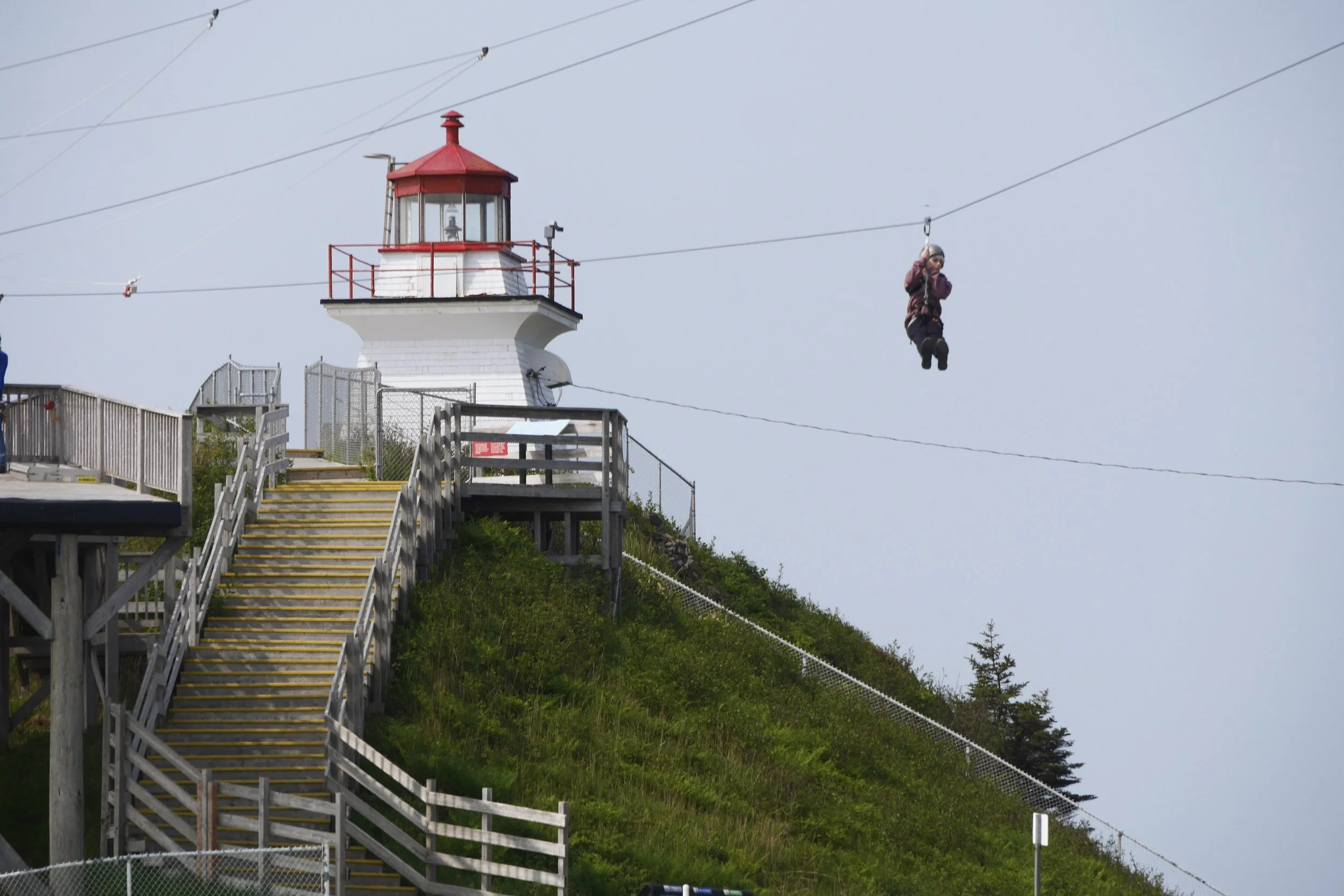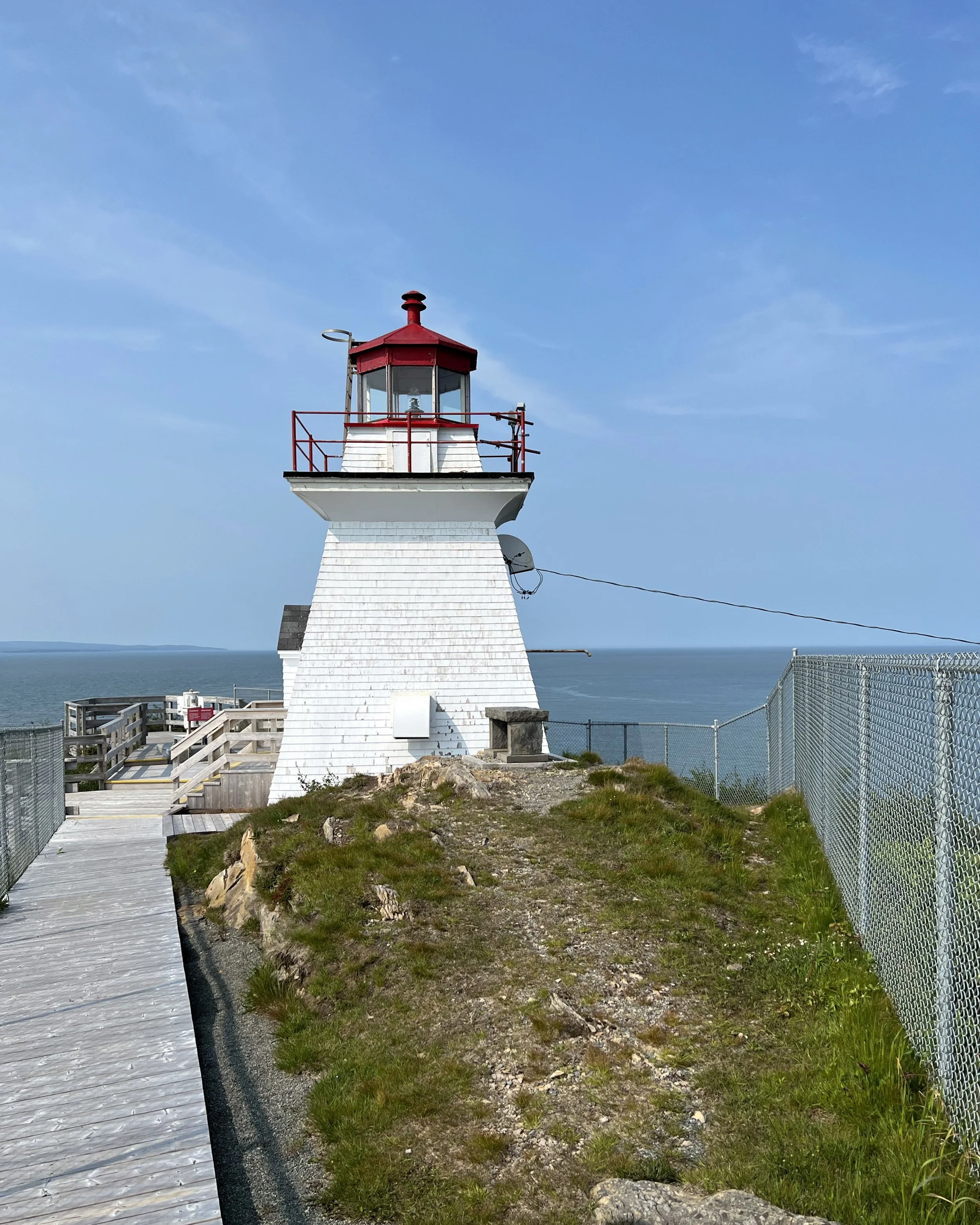 To allow enough time to get to Hopewell Rocks, we planned to arrive at Cape Enrage when they opened. As it ends up, we timed it just right. After parking, the first thing we did was walk up to the lighthouse. The lighthouse itself wasn't open for visitors, but we were able to look at it from all sides. Next to the lighthouse was a fog horn with a sign warning that it was automatic and could go off at any time. Fortunately, the weather was clear.