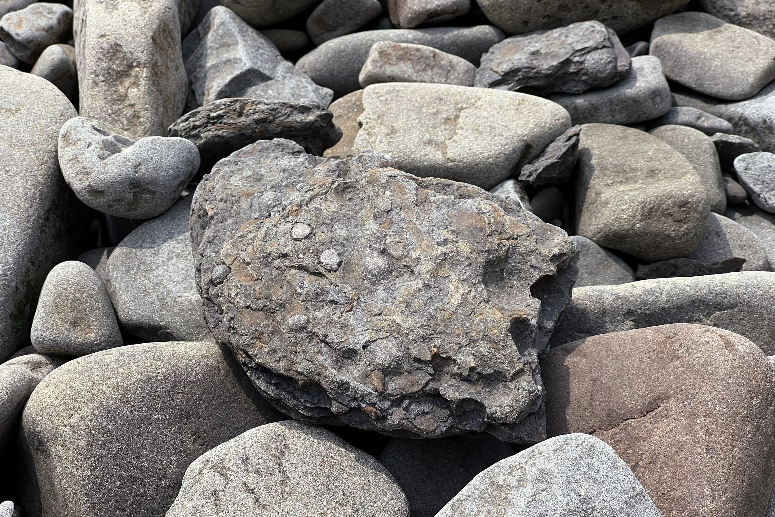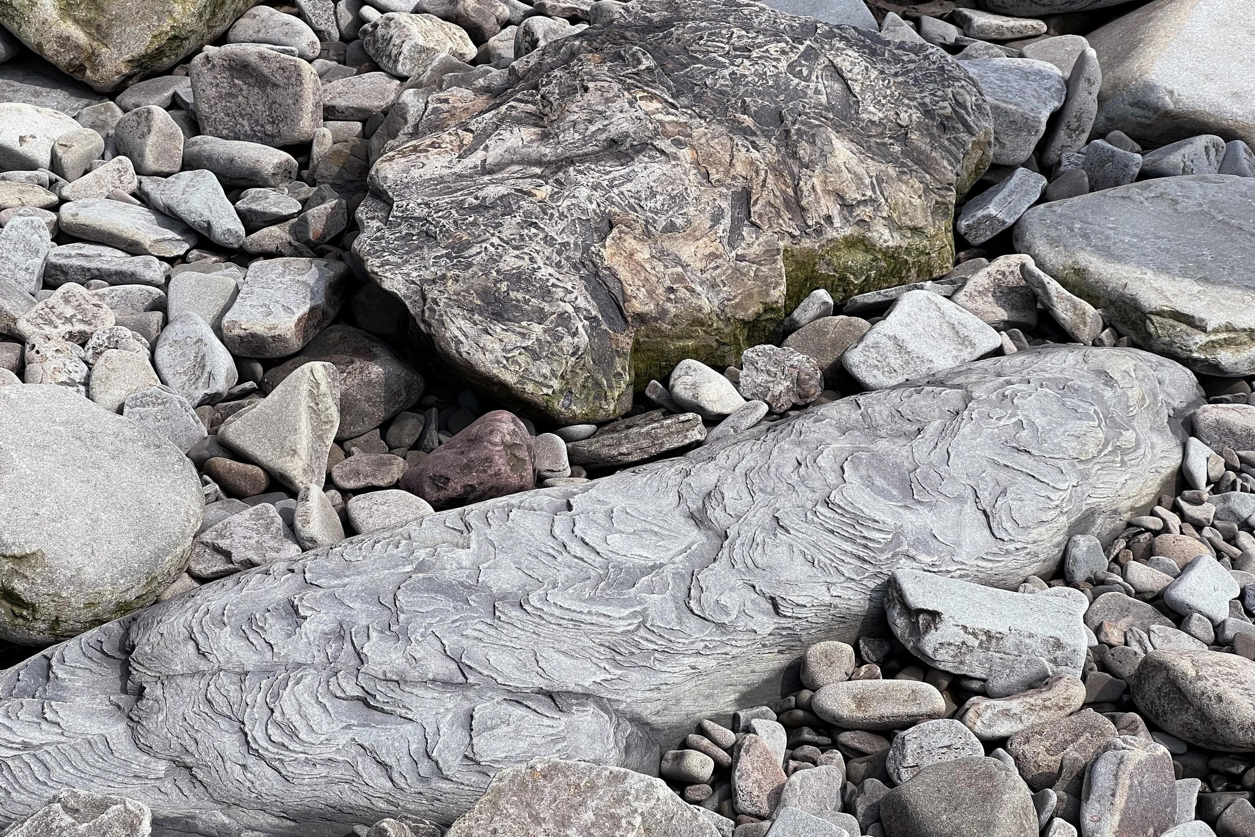 There are a lot of rocks with fossils in them on the beach, but you have to search around for them. Even when you find one, it's sometimes hard to tell if the markings are due to fossils or if the rock just naturally has those markings. We did find some which we were very sure were fossils. My thought is sometime in the future, I would be looking through photos and wondering why I have so many pictures of rocks.