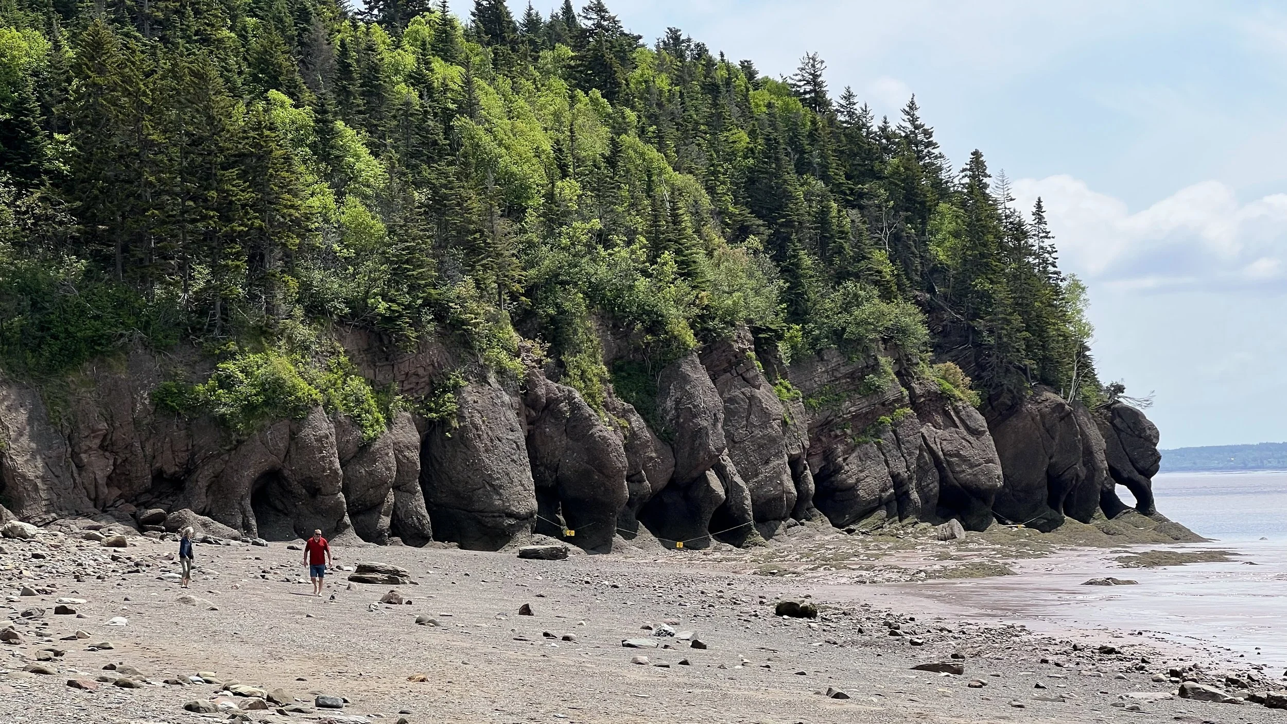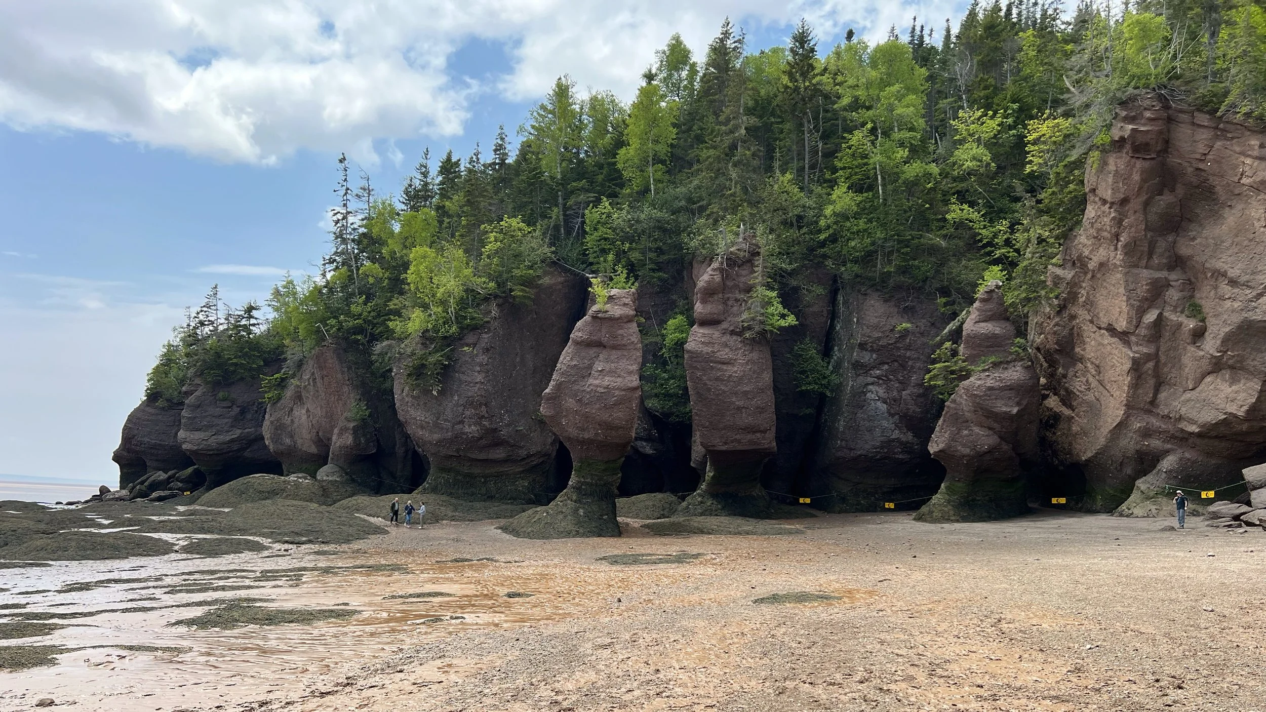 After leaving St. Martins, we went to Cape Enrage to look at the lighthouse and stroll along a beach with fossils. We then went to Hopewell Rocks Provincial Park and saw many sea stacks. Finally, we drove to Moncton, where we are spending the next couple of nights.