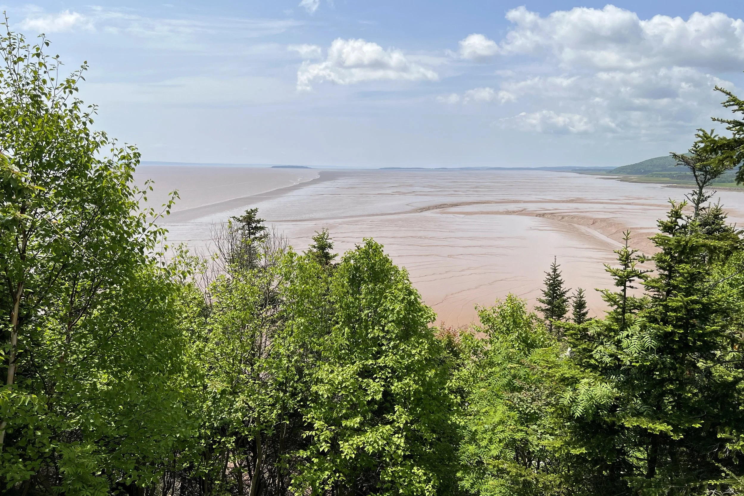 We were starting out at the beginning of the two-hour window for low tide, so we decided to check out the other lookout spots first. It may seem strange to have such a wide range for low tide, but when we got to Demoiselle Beach. The mud flats went out literally as far as you could see. However, the tides can range over 30 feet between high and low tide, so the water moves in very quickly.