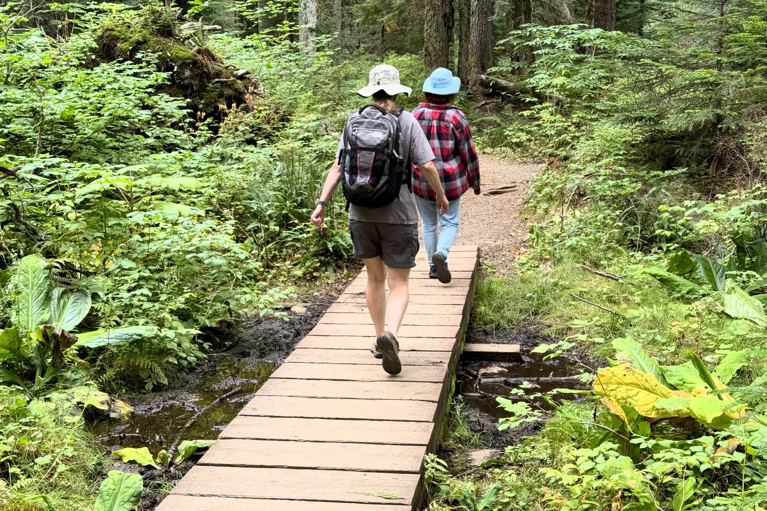 On the next day, we joined Neal and Kevin for breakfast. Keith and Bev showed up after they ate at their B&B, and then they joined Kevin, Celeste, Melody, and me to walk around Antoine Peak, after which we all went to a deli for lunch.
