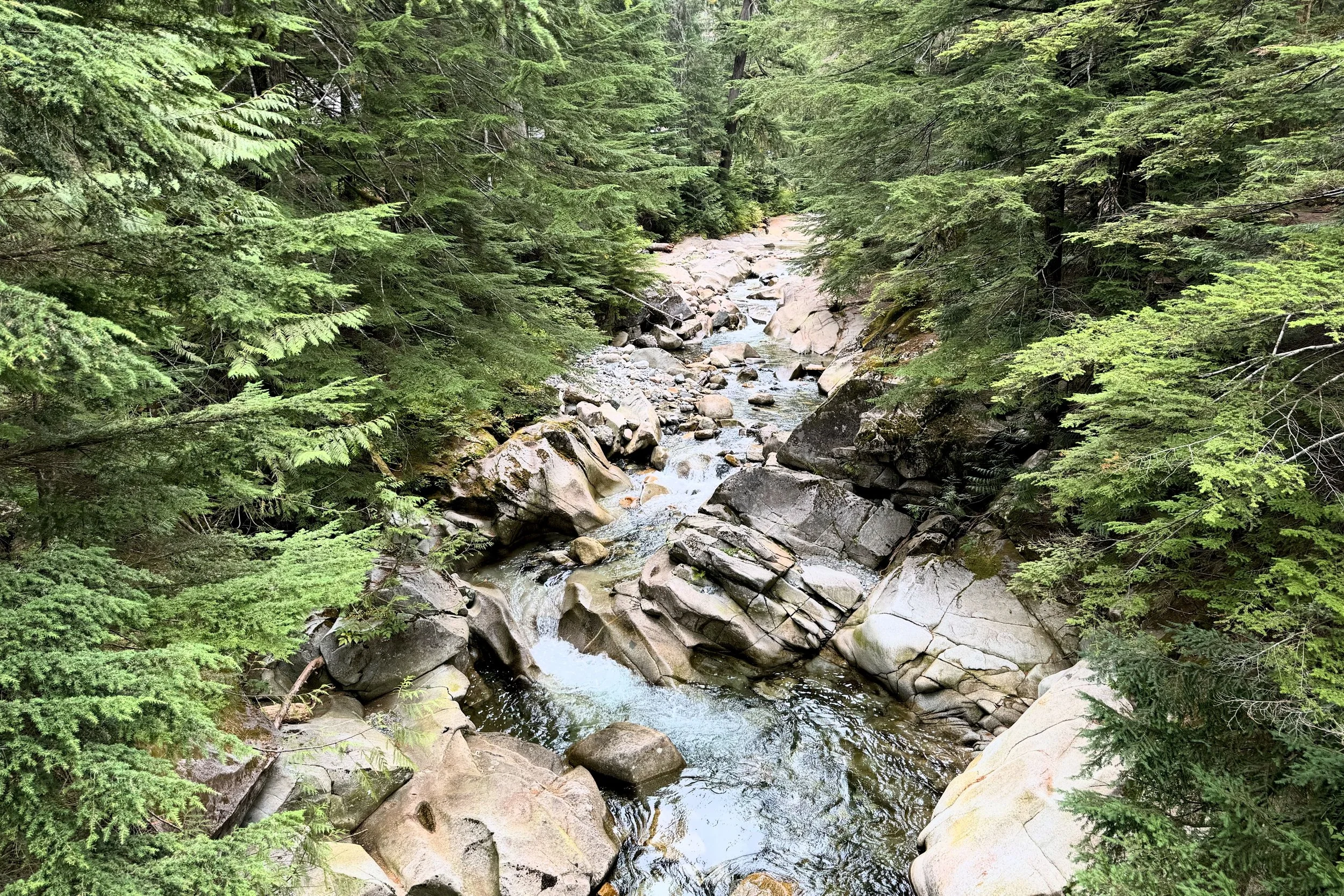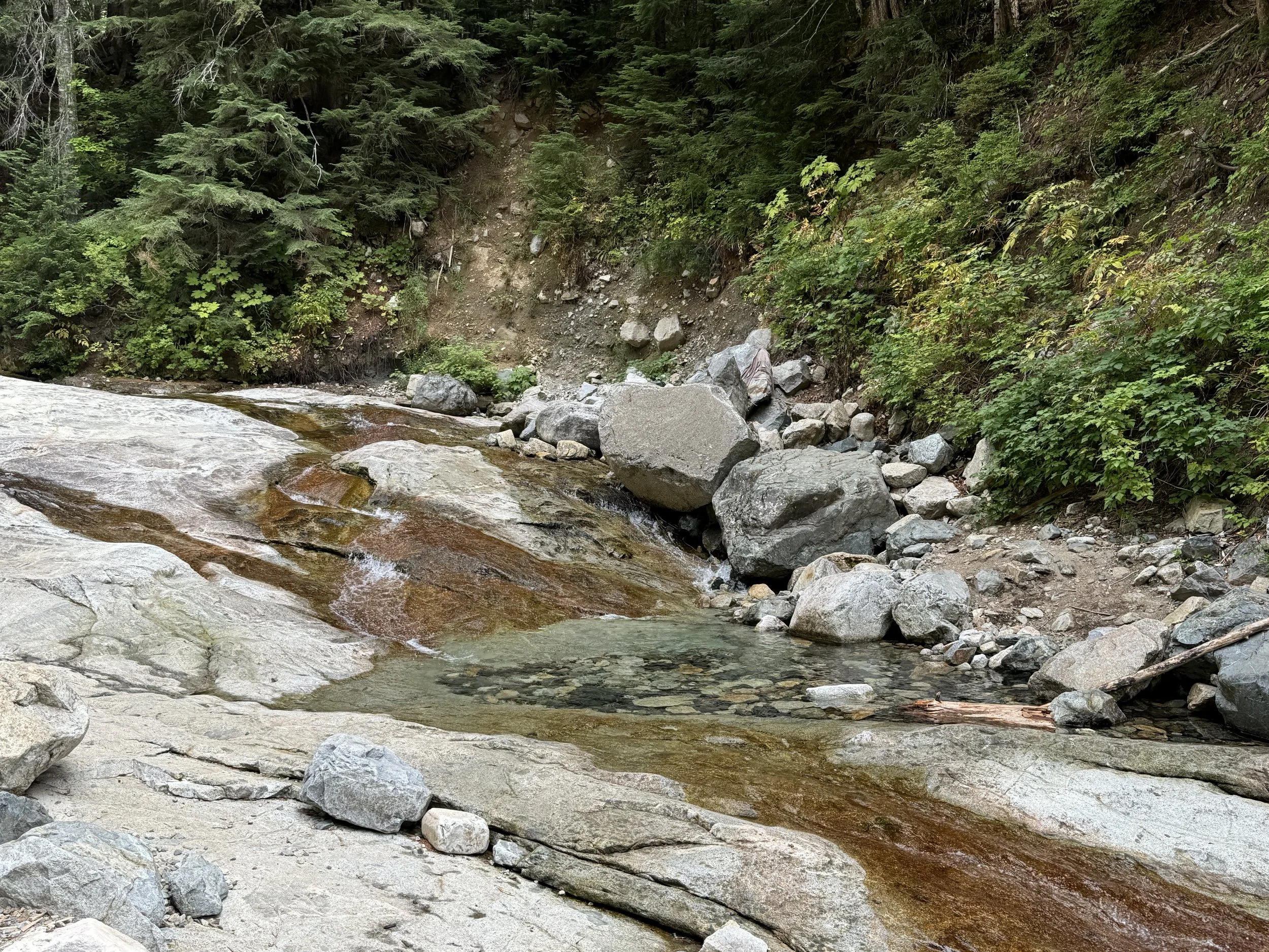 Our first stop was Yakima to see Melody and Celeste’s mom, Jean. On the way, we made a quick stop to do a quick hike along Denny Creek. We made it to the Slide, which is a big rock that you can slide down when the river is high enough.