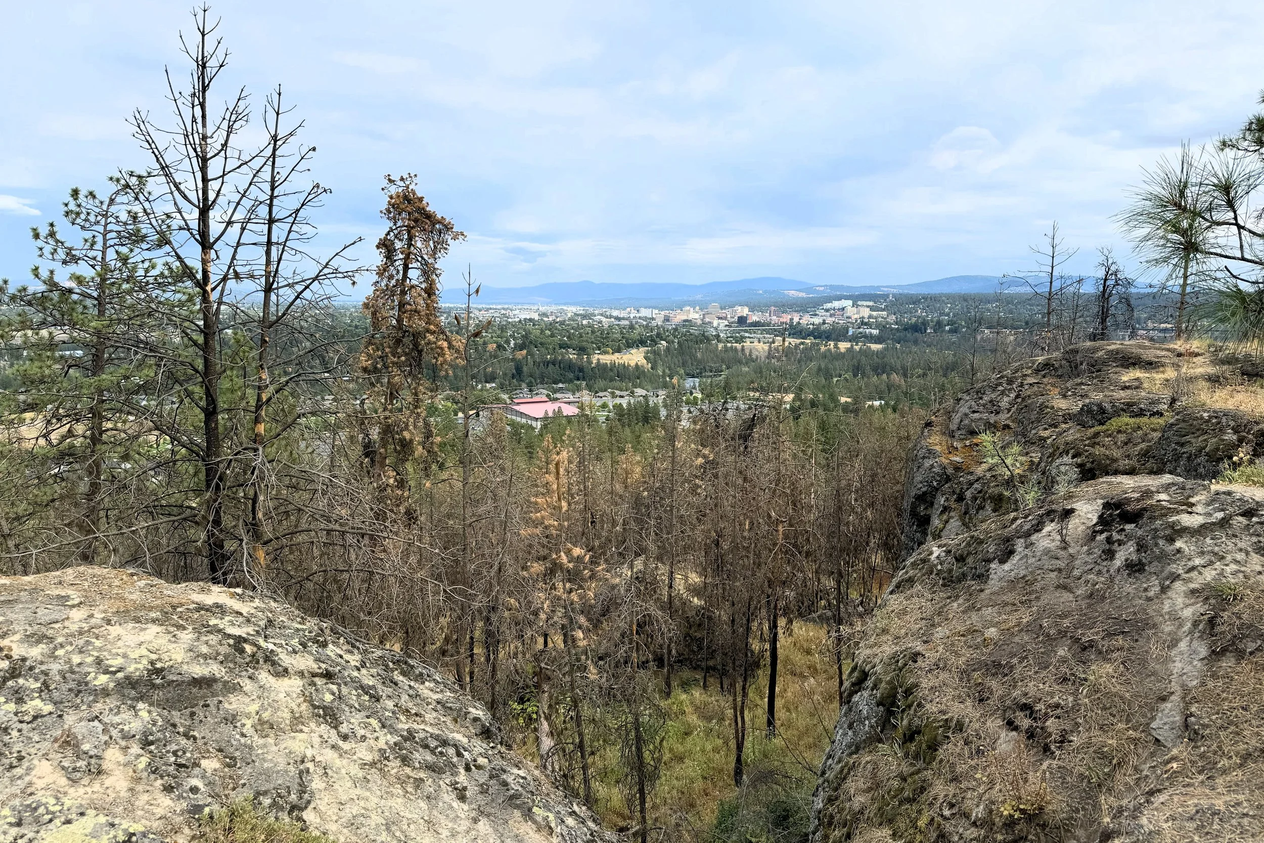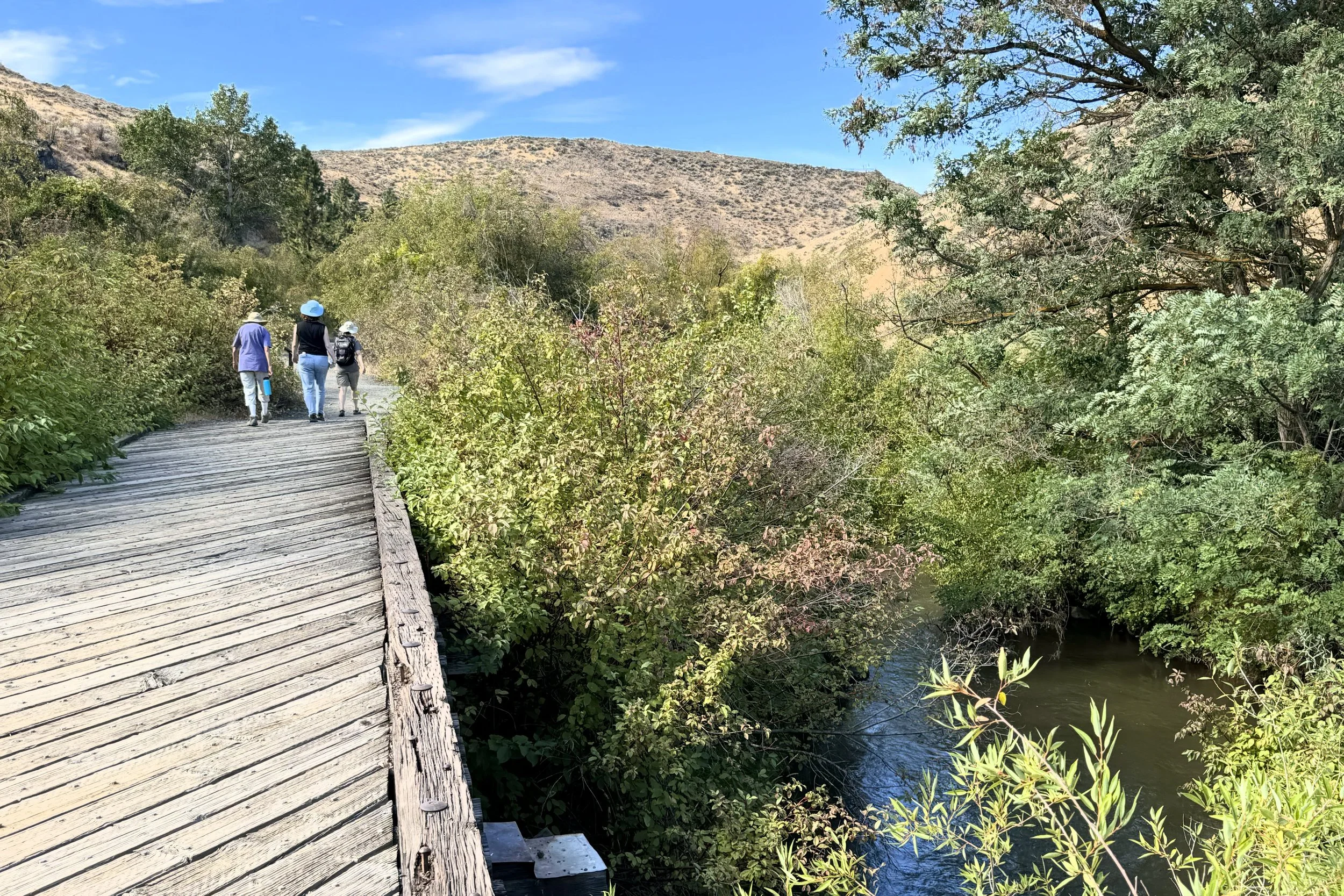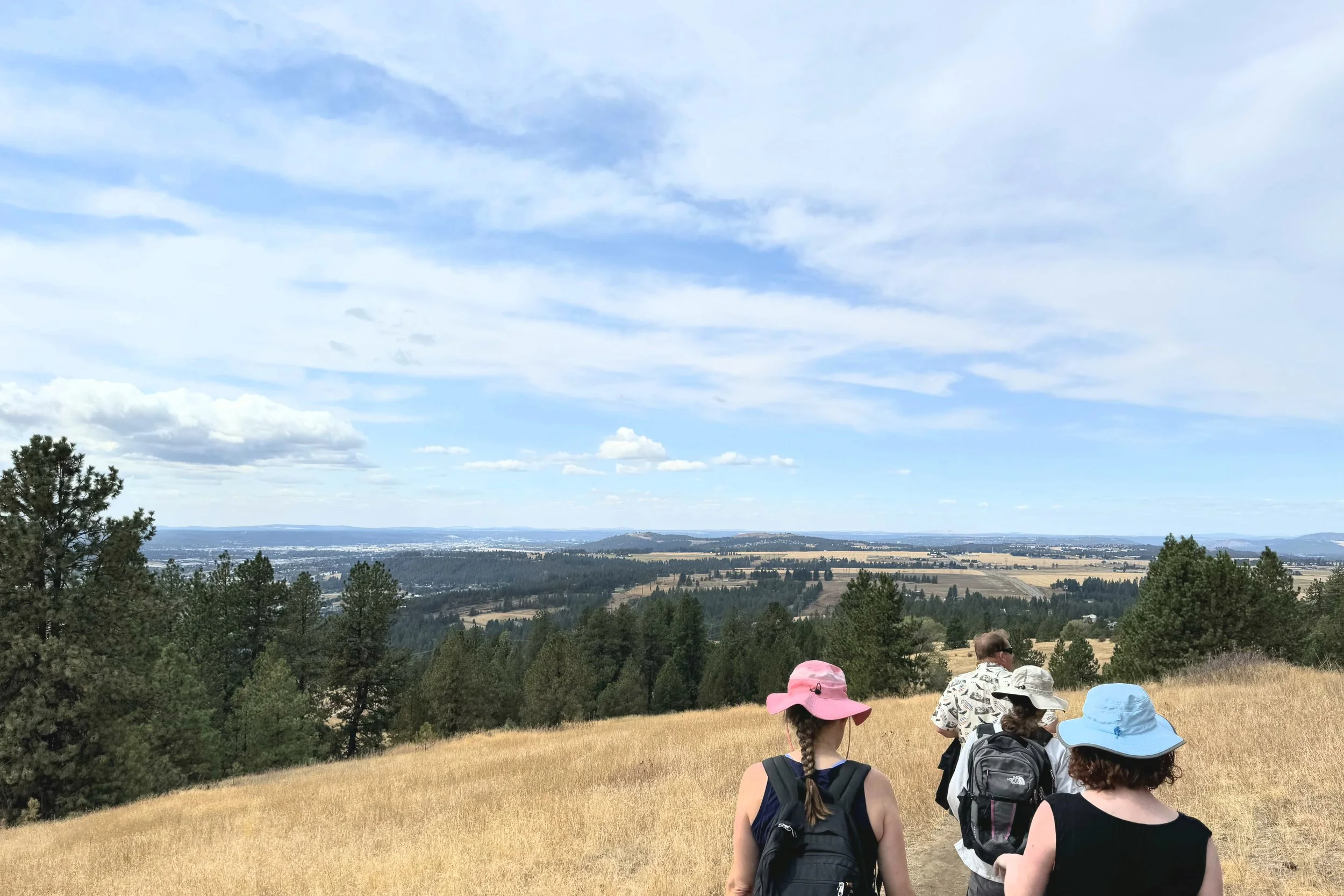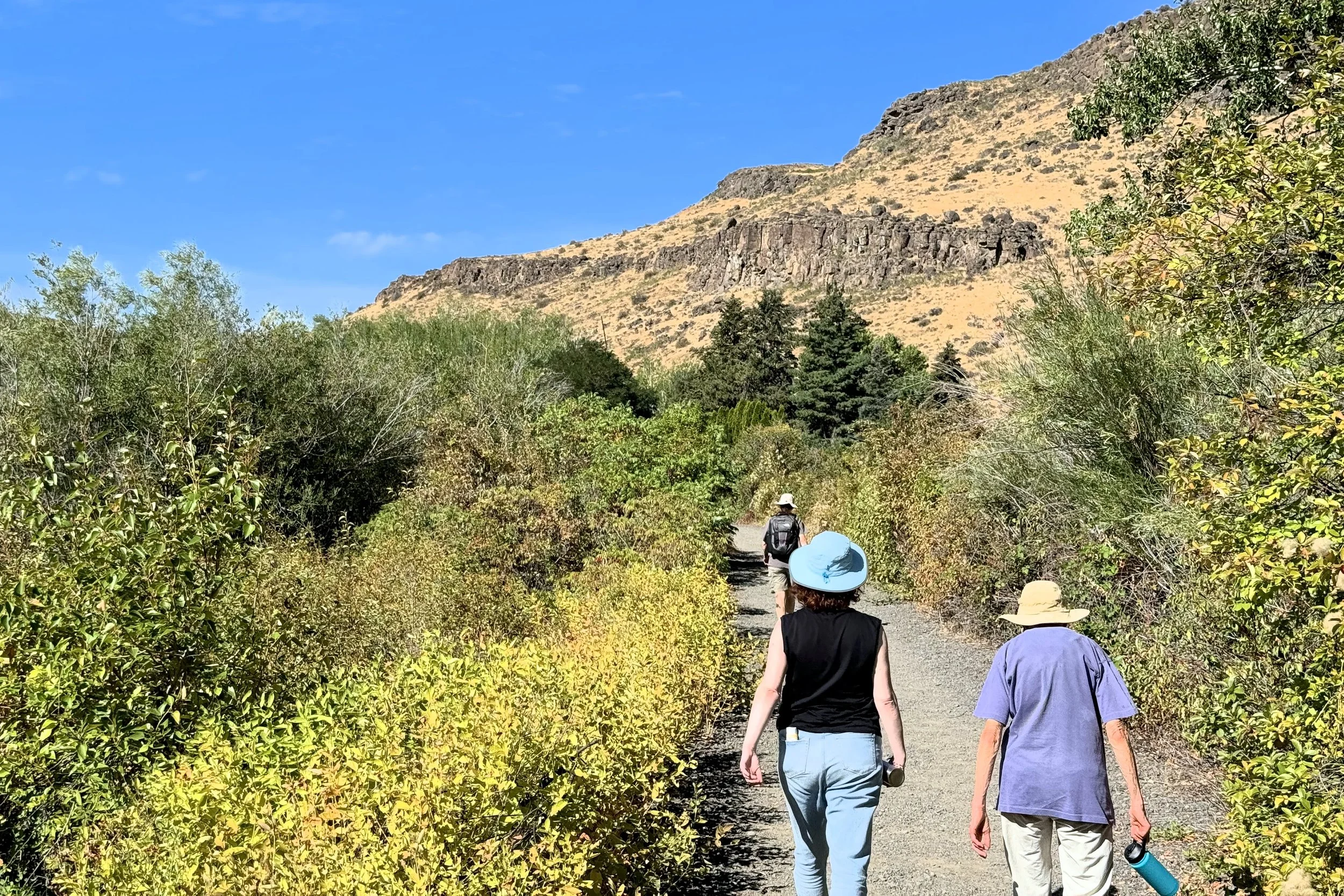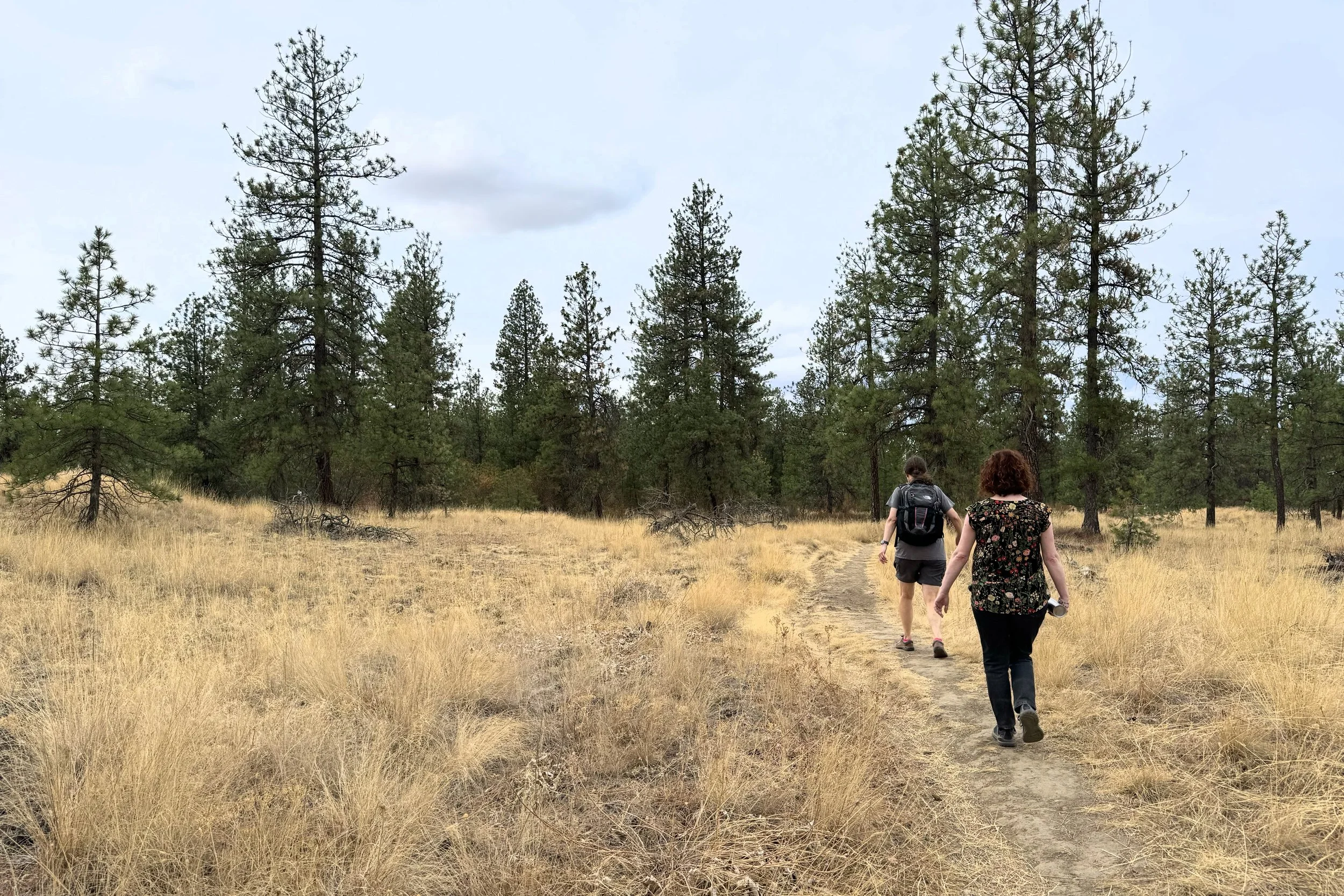 Once we got to Spokane, we took a slight detour to go to Palisades Park and did yet another short hike, this time doing the outer loop. The hike started quite level, taking us through dry grasses which at times required quite a bit of way-finding to make sure we were going the right way. We then started going down into a canyon, ending up at a small creek which we needed to ford. We then climbed back up and saw what would be the waterfall at the end of the canyon, but there wasn't enough water to see it in action.