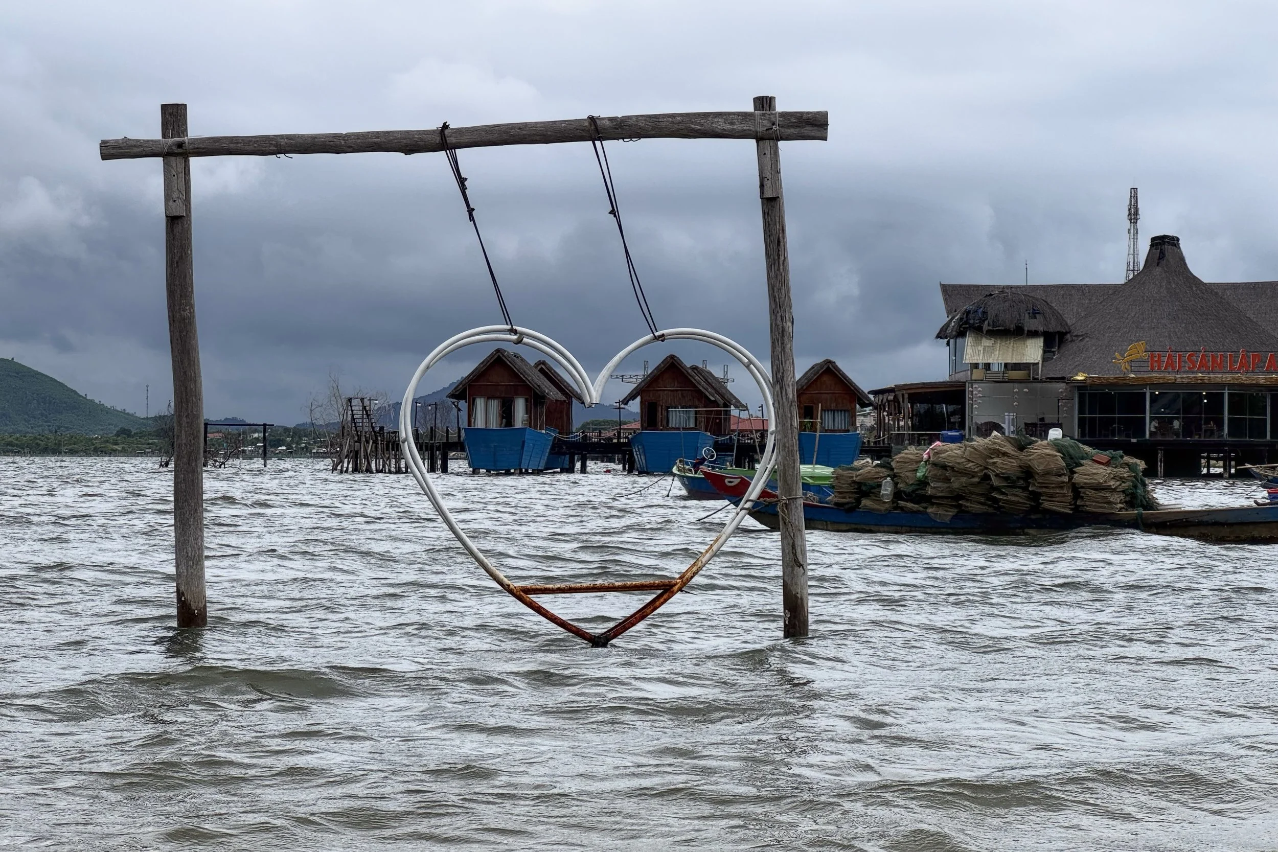 Across the street from one cafe was an area that jutted into Lap An Lagoon. Phu Loc.
